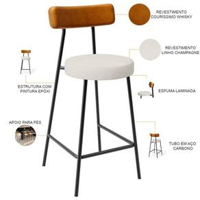 Amplamente moderna, dispondo de muito realce e design singular, o Kit 05 Banquetas Baixa Para Cozinha Sala De Jantar Bar Bancada Milão L02 Couríssimo Whisky Linho Champagne - Lyam Decor vem com a personalidade e elegância que sua decoração merece! Estruturada em aço carbono, contrasta lindamente com o encosto e assento estofados, cabe mencionar ainda seu revestimento em Couríssimo, é confeccionada por materiais de excelente qualidade, extremamente resistentes e aconchegantes.