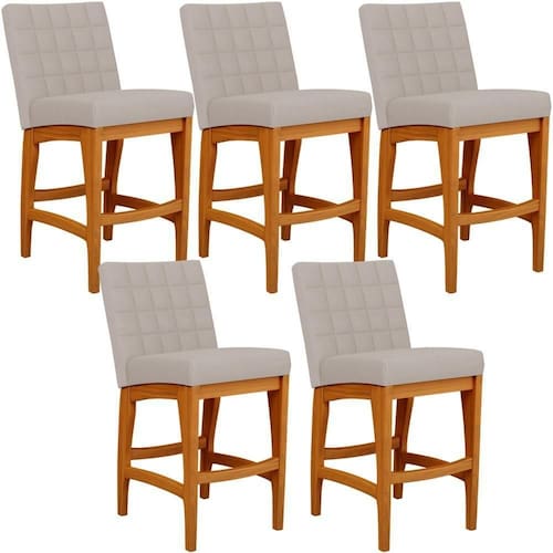 ndo muita excelência, o Kit 05 Banquetas Baixa Para Cozinha Bancada Bar Sala De Jantar 90 cm Fixa Mila L02 Linho Bege - Lyam Decor é o complemento que faltava para deixar sua casa ainda mais extraordinária. Seu encosto com costura em padrão quadriculado e assento estofados, centralizam em si uma graciosidade estonteante, sem perder todo o seu conforto. A estrutura em madeira, na cor nozes, também é digna de notoriedade, por imprimir bastante personalidade a sua decoração. Vale ressaltar ainda, o apoio para os pés que garante maior à mesma.