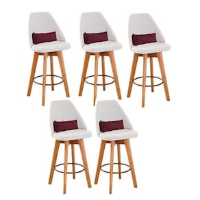 Kit 05 Banquetas Alta Maya Giratória Com Encosto Gourmet Linho Bege E Almofada Suede Bordô - Gat Magazine Banqueta Maya Giratória - GAT MAGAZINE A Banqueta Maya possui assento e pés em madeira eucalipto com sistema giratório! Os pés contam com um reforço que proporciona um suporte de peso de até 120 Kgs.O assento é revestido com espuma D-23. Além de bonita e charmosa, vai trazer para seu ambiente elegância e proporcionará conforto para sua família e amigos nos momentos de lazer.