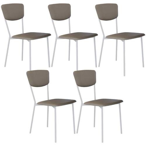 ProductInstructions: Produto para uso em ambiente interno, nao devendo ficar exposto ao sol, calor e umidade excessivos. | ColorSupplier: Cinza | ProductWidth: 43 cm | ProductWeight: 32,5 kg | ProductLength: 53 cm | Color: Cinza | ColorFamily: Cinza | OriginCountry: Brasil | ProductWarranty: 90 dias após o recebimento do produto | SizeDescription: Altura: 249 cm x Largura: 43 cm x Profundidade: 53 cm | Material: Estrutura em Aço e MDP, Revestimento em Couro sintético e espuma | SupplierSimpleName: Kit 05 Cadeira Para Sala de Jantar Village Branco C01 Courino Cinza - Lyam Decor | MaterialFamily: Aço, MDP, Couro sintético e espuma | OriginState: PR | ColorSimple: Cinza | Model: Village | ProductContents: 05 Cadeiras | ProductHeight: 249 cm | Cor: Cinza