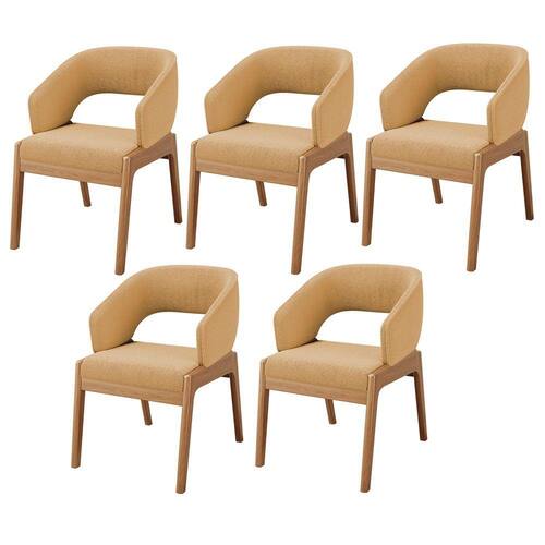 Kit 05 Cadeiras de Jantar e Estar Living Estofada Lince L02 Bouclê Mostarda - Lyam Decor - Amarelo Ouro
