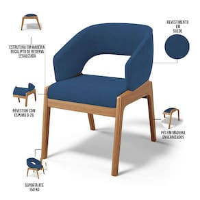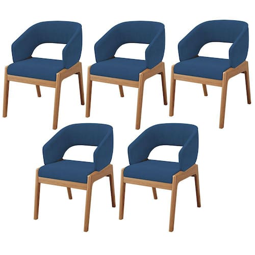 Kit 05 Cadeiras de Jantar e Estar Living Estofada Lince L02 Suede Azul Marinho - Lyam Decor