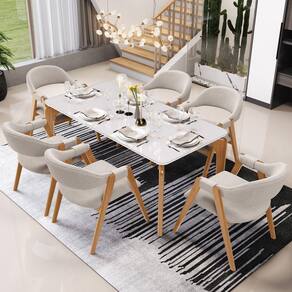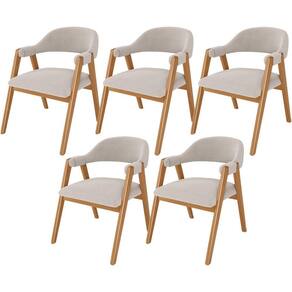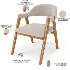 O Kit 05 Cadeiras de Jantar e Estar Living Estofada Nadja, das Lyam Decor, é a escolha perfeita para criar uma sala de jantar moderna e acolhedora. Com seu design curvo e pés de madeira maciça envernizada, essa cadeira estofada traz elegância e sofisticação ao ambiente. Além disso, é tapeçada com espuma d-26, o que proporciona um conforto excepcional, permitindo que você desfrute de momentos incríveis à mesa. Já o design orgânico combina beleza e modernidade, tornando-a uma peça única, enquanto os braços adicionam um toque extra de conforto e estilo.