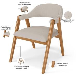 O Kit 05 Cadeiras de Jantar e Estar Living Estofada Nadja, das Lyam Decor, é a escolha perfeita para criar uma sala de jantar moderna e acolhedora. Com seu design curvo e pés de madeira maciça envernizada, essa cadeira estofada traz elegância e sofisticação ao ambiente. Além disso, é tapeçada com espuma d-26, o que proporciona um conforto excepcional, permitindo que você desfrute de momentos incríveis à mesa. Já o design orgânico combina beleza e modernidade, tornando-a uma peça única, enquanto os braços adicionam um toque extra de conforto e estilo. A Cadeira Nadja é o equilíbrio perfeito entre funcionalidade e design, uma vez que pode facilmente ser utilizada em diversos ambientes, como espaços comerciais, recepção de hotel e eventos, até como poltrona para sala de estar. Adicione esse elemento indispensável à sua decoração e transforme qualquer ambiente em um lugar especial. Não perca a oportunidade de adquirir essa cadeira de jantar que vai encantar a todos.