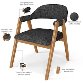 Kit 05 Cadeiras De Jantar E Estar Living Estofada Nadja L02 Linho grafite - Lyam Decor