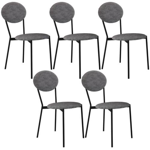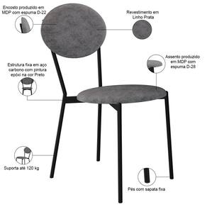 Kit 05 Cadeiras Estofada Para Sala De Jantar Azuri Preto C01 Linho Prata - Lyam Decor