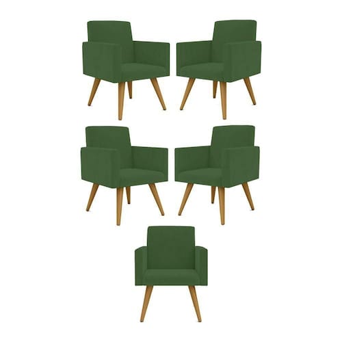 Kit 05 Cadeiras Poltronas Decorativa - Escritório - Recepção Cor:verde