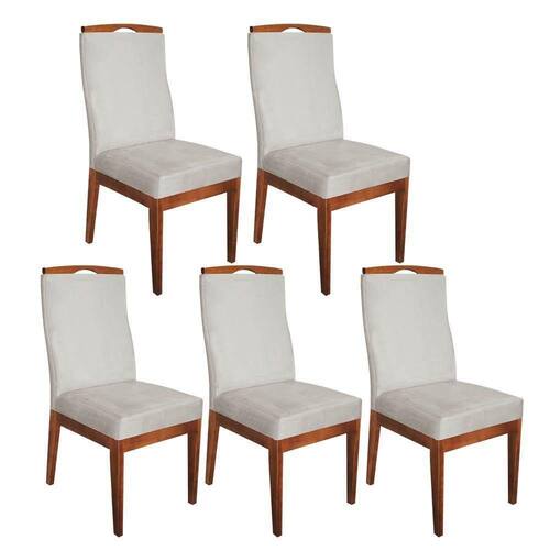 Conjunto 05 Cadeiras Para Sala De Jantar Ricco Estofada Madeira Carvalho Veludo Bege Claro - Ahazzo Móveis Cor Bege