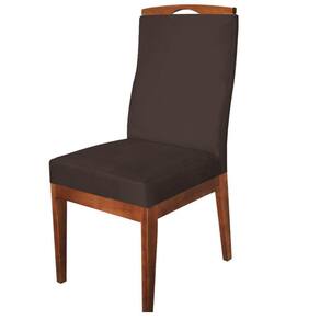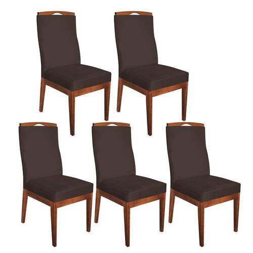 Conjunto 05 Cadeiras Para Sala De Jantar Ricco Estofada Madeira Carvalho Veludo Marrom Escuro - Ahazzo Móveis Cor Marrom