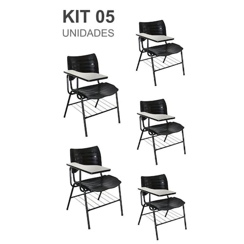 KIT 05 Cadeiras Universitárias c/ porta livros – Cor Preto