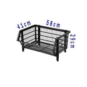 Kit 05 Cesto Expositor Empilhavel Organizador 05 Unidades - Material : Polipropileno - Dimensões Externas: 29 cm de altura x 41 cm de largura x 58 cm de comprimento - Capacidade volumétrica: 55 litros - Capacidade de carga por cesto: 11,1 kg - Capacidade de carga por empilhamento: 88 kg - Empilhável até 08 peças - Cor: Preto Aplicações: - Mercadinhos, supermercados, hipermercados. Lojas de auto peças, lojas de roupas e calçados, depósitos de material de construção, drogarias, perfumarias, farmácias e comércio em geral.
