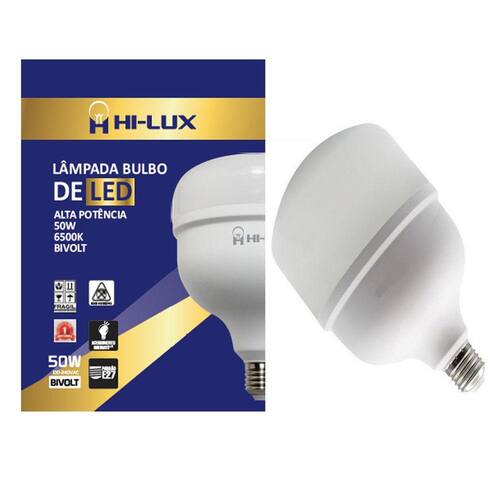 ESPECIFICAÇÕES - Índice de proteção: IP20 - Tensão: Bivolt Automático 100V - 240V - Ângulo de abertura: 220º - IRC**: >80 - Vida útil: 25.000 horas - Potência: 50W - Fluxo luminoso: 4000 lumens - Base: E27 - Temperatura de cor: 6500K (Branca) - Eficiência luminosa: 80lm/W -Dimensão (mm): 138mm x 190mm