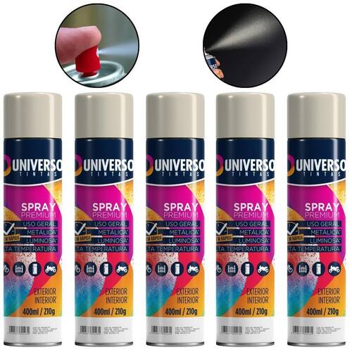 Kit 05 Latas Tinta Spray Branco Fosco 400Ml Uso Geral