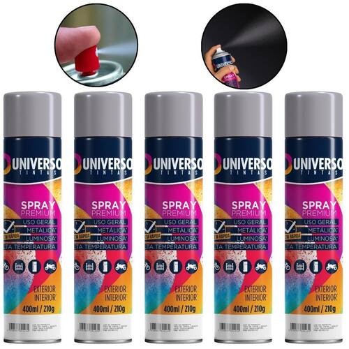 Kit 05 Latas Tinta Spray Cinza 400Ml Uso Geral Aço Couro