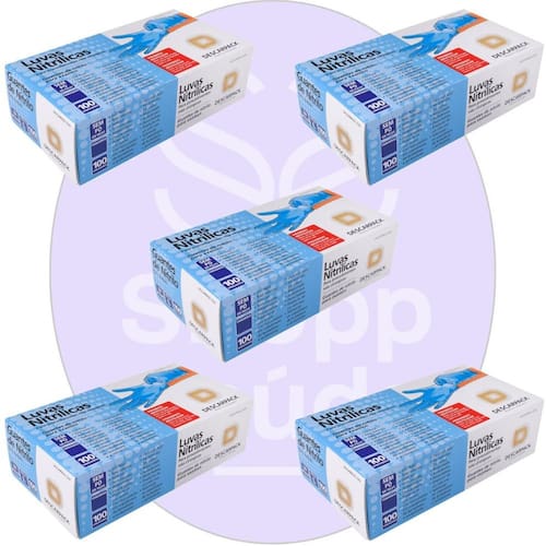 Kit 05 Luva Descartável Nitrílica Sem Pó Azul G Descarpack