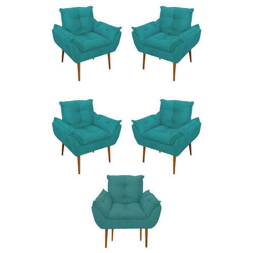 Kit 05 Poltrona Opala Sofá Sala, Quarto, Escritório Suede Cor:azul Turquesa