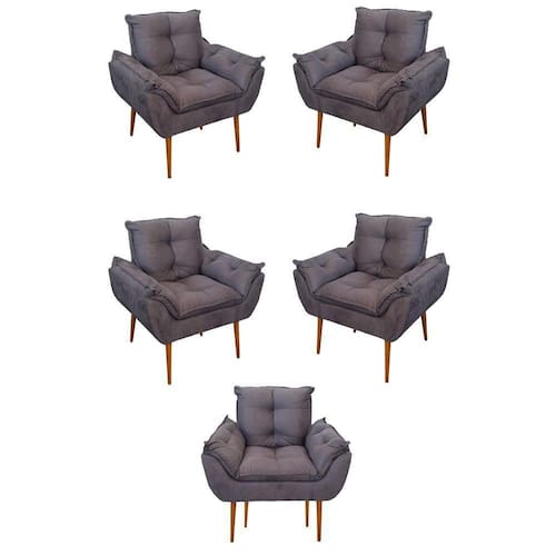 Kit 05 Poltrona Opala Sofá Sala, Quarto, Escritório Suede Cor:cinza