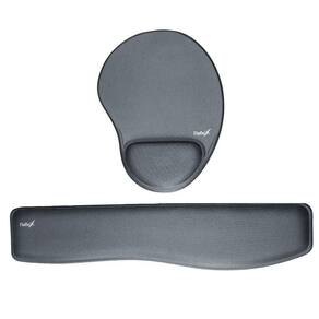 O combo acompanha 05x unidades de APOIO ERGONÔMICO PARA TECLADO (DESCANSO DE PUNHO) + 05x unidades MOUSE PAD em ESPUMA DE PU COM LATEX ergonômico para mais conforto ao seu braço.
