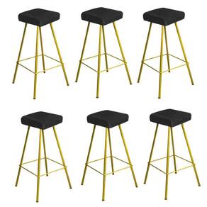 Kit 06 Banqueta Alta Lira Eiffel Industrial Cozinha Bar Balcão Bistrô Ferro Dourado Suede Preto - Ahazzo Móveis