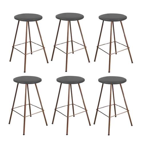 Kit 06 Banqueta Alta Loni Eiffel Industrial Cozinha Bar BalcãO Bistrô Ferro Bronze Suede Cinza - Ahazzo MóVeis