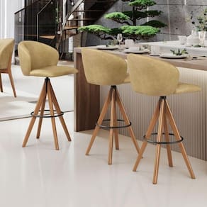 A Banqueta Alta Mia, da Lyam Decor, é a combinação perfeita de design orgânico, conforto e modernidade, expressos em cada detalhe, desde as linhas curvas do assento e encosto até os pés de madeira maciça envernizada. Em outras palavras, essa banqueta estofada é ideal para complementar sua sala de jantar ou estar com elegância e estilo. Além disso, a tapeçaria feita com espuma D-26 oferece um conforto excepcional, permitindo que você desfrute de momentos prazerosos durante suas refeições ou conversas com amigos e familiares. Para completar, essa cadeira de jantar moderna é perfeita para quem busca uma sala de jantar contemporânea, já que seu design único traz uma sensação de beleza e sofisticação ao ambiente e, ainda, harmoniza facilmente com diversos estilos de mesa de jantar. A Banqueta Mia é o equilíbrio perfeito entre funcionalidade e design, uma vez que pode facilmente ser utilizada em diversos ambientes, como área gourmet, cozinhas, bancadas e até em eventos eventos. Adicione esse elemento indispensável à sua decoração e transforme qualquer ambiente em um lugar especial. Não perca a oportunidade de adquirir essa banqueta alta que vai encantar a todos.
