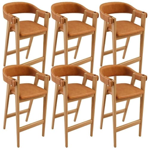 Color: Laranja | ColorFamily: Laranja | ColorSimple: Laranja | ColorSupplier: Canela | Material: Estrutura em Madeira, Revestimento em Couro sintético e espuma | MaterialFamily: Madeira, couro sintético e espuma | Model: Nadja | OriginCountry: Nacional | OriginState: PR | ProductContents: 06 Banquetas | ProductHeight: 260 cm | ProductInstructions: Produto para uso em ambiente interno, nao devendo ficar exposto ao sol, calor e umidade excessivos. | ProductLength: 53 cm | ProductWarranty: 90 dias após o recebimento do produto | ProductWeight: 60 kg | ProductWidth: 52 cm | SizeDescription: Altura: 260 cm x Largura: 52 cm x Profundidade: 53 cm | SupplierSimpleName: Kit 06 Banquetas Alta Bar Cozinha Sala de Jantar Bar Nadja L02 Couríssimo Canela - Lyam Decor