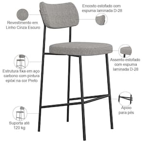 Para você que busca conforto, realce e praticidade, O Kit 06 Banquetas Alta Estofada Melina vai superar todas as suas expectativas! Garante muita comodidade e otimiza o espaço, além de harmonizar com seu estilo decorativo facilmente, podendo ser utilizada em bancadas, cozinha americana, espaço gourmet ou home bar, trazendo um toque especial em sua decoração. Sua proposta de design suavizará seu ambiente sem passar despercebida oferecendo mais leveza e receptividade ao seu lar. Estruturada em aço carbono, contrasta lindamente com o encosto e assento estofados que são extremamente confortáveis, resistentes e aconchegantes. Você merece esta incrível combinação em sua casa, adquira já a sua!