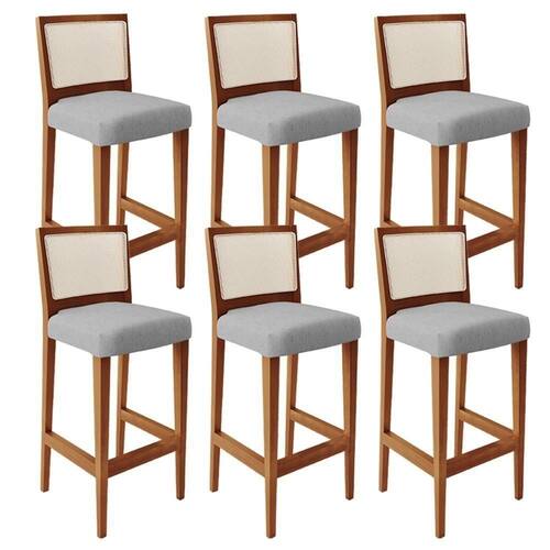 O Kit 06 Banqueta Alta Para Cozinha Sala de Jantar Fixa Telado Branco Zion L02 Linho Cinza - Lyam Decor, possui um estilo rustico que faltava para deixar sua casa ainda mais clássica. Seu encosto com o detalhe de tela sintética na cor branca trazem ainda mais estilo e destaque para sua decoração, junto com assento estofado que proporciona horas de conforto. A estrutura e o apoio para os pés, são responsáveis por garantir maior segurança à mesma.