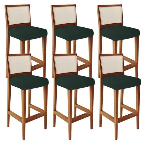 O Kit 06 Banquetas Alta Para Cozinha Sala de Jantar Fixa Telado Branco Zion L02 Linho Verde Musgo - Lyam Decor, possui um estilo rustico que faltava para deixar sua casa ainda mais clássica. Seu encosto com o detalhe de tela sintética na cor branca trazem ainda mais estilo e destaque para sua decoração, junto com assento estofado que proporciona de conforto. A estrutura e o apoio para os pés, são responsáveis por garantir maior segurança à mesma.