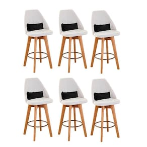 Kit 06 Banquetas Alta Maya Giratória Com Encosto Gourmet Linho Bege E Almofada Sintético Preto - Aurora Line