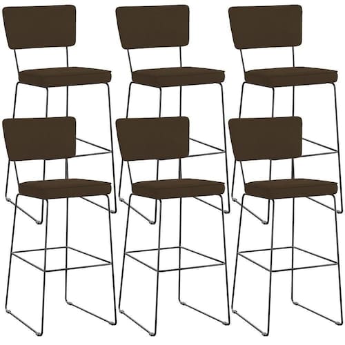 ColorSupplier: Marrom | Depth Front To Back: 58 | DepthWidthSideToSide: 58 | Profundidade: 58 | ColorFamily: Marrom | ColorSimple: Marrom | Color: Marrom | Altura: 102 | ProductHeight: 102 cm | ProductWarranty: 90 dias após o recebimento do produto | ProductContents: 06 Banquetas | OriginCountry: Nacional | ProductWeight: 60 kg | SupplierSimpleName: Kit 06 Banquetas Alta Para Cozinha Sala De Jantar Base Em Aço Allana L02 Suede Marrom - Lyam Decor | ProductWidth: 45 cm | MaterialFamily: Ferro | Model: Allana | ProductLength: 55 cm | ProductInstructions: Produto para uso em ambiente interno, nao devendo ficar exposto ao sol, calor e umidade excessivos. | Material: Ferro | SizeDescription: Altura: 102 cm Largura: 45 cm Profundidade: 55 cm | OriginState: PR | Largura: 45 | Lado a Lado: 58