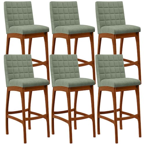 Entregando muita excelência, a Banqueta Alta Para Cozinha Sala De Jantar Fixa Mila B04 Bouclê Oliva - Lyam Decor é o complemento que faltava para deixar sua casa ainda mais extraordinária. Seu encosto com costura em padrão quadriculado e assento estofados, centralizam em si uma graciosidade estonteante, sem perder todo o conforto, sendo revestidos pelo riquíssimo tecido em bouclê que por si só já é um espetáculo. A estrutura em madeira, na cor nozes, também é digna de notoriedade, por imprimir bastante personalidade a sua decoração. Vale ressaltar ainda, o apoio para os pés que garante maior segurança à mesma.