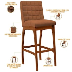 Entregando muita excelência, a Banqueta Alta Para Cozinha Sala De Jantar Fixa Mila B04 Bouclê Terracota - Lyam Decor é o complemento que faltava para deixar sua casa ainda mais extraordinária. Seu encosto com costura em padrão quadriculado e assento estofados, centralizam em si uma graciosidade estonteante, sem perder todo o conforto, sendo revestidos pelo riquíssimo tecido em bouclê que por si só já é um espetáculo. A estrutura em madeira, na cor nozes, também é digna de notoriedade, por imprimir bastante personalidade a sua decoração. Vale ressaltar ainda, o apoio para os pés que garante maior segurança à mesma.