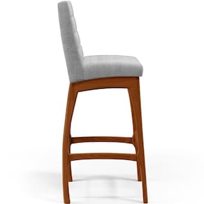 ndo muita excelência, o Kit 06 Banquetas Alta Para Cozinha Sala De Jantar Fixa Mila B04 Bouclê Cinza - Lyam Decor é o complemento que faltava para deixar sua casa ainda mais extraordinária. Seu encosto com costura em padrão quadriculado e assento estofados, centralizam em si uma graciosidade estonteante, sem perder todo o conforto, sendo revestidos pelo riquíssimo tecido em bouclê que por si só já é um espetáculo. A estrutura em madeira, na cor nozes, também é digna de notoriedade, por imprimir bastante personalidade a sua decoração. Vale ressaltar ainda, o apoio para os pés que garante maior à mesma.