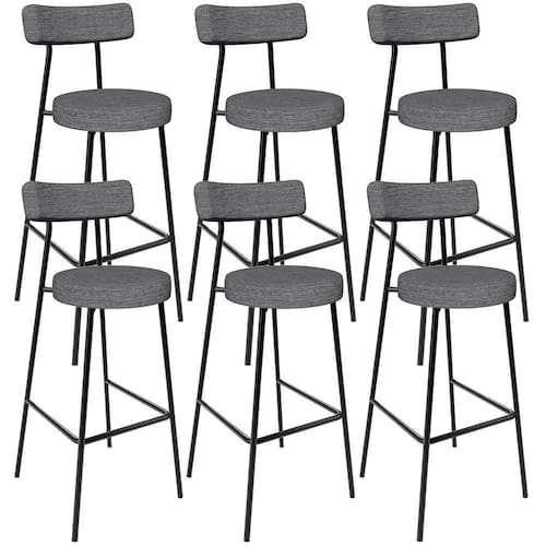 Kit 06 Banquetas Altas Cozinha Bar Sala De Jantar Em Aço Milão L02 Linho Cinza Escuro - Lyam Decor