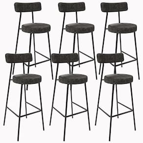 Amplamente moderno dispondo de muito realce e design singular, o Kit 06 Banquetas Altas Cozinha Sala De Jantar Estrutura Em Aço Milão F01 Linho Chumbo - Lyam Decor vem com a personalidade e elegância que sua decoração merece! Estruturado em aço carbono, contrasta lindamente com o encosto e assento estofados, cabe mencionar ainda seu revestimento em Linho, é confeccionado por materiais de excelente qualidade, extremamente resistentes e aconchegantes.