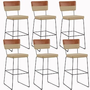 O espetáculo que é o Kit 06 Banquetas Altas Sala Jantar Allana L02 Faixa Couríssimo Camel Linho Bege Escuro - Lyam Decor vem para agregar ainda mais valor na decoração da sua casa. Sua estrutura em aço remete-nos ao estilo industrial que surgiu em Nova York no século XX, já o assento e encosto estofados trazem equilíbrio e conforto criando a combinação perfeita para o ambiente.