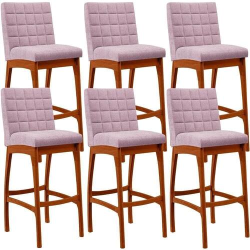 ndo muita excelência, o Kit 06 Banquetas Altas Para Cozinha Sala De Jantar Fixa Mila B04 Bouclê Rosê - Lyam Decor é o complemento que faltava para deixar sua casa ainda mais extraordinária. Seu encosto com costura em padrão quadriculado e assento estofados, centralizam em si uma graciosidade estonteante, sem perder todo o conforto, sendo revestidos pelo riquíssimo tecido em bouclê que por si só já é um espetáculo. A estrutura em madeira, na cor nozes, também é digna de notoriedade, por imprimir bastante personalidade a sua decoração. Vale ressaltar ainda, o apoio para os pés que garante maior segurança à banqueta.