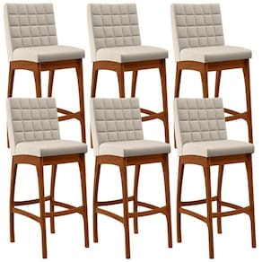 Entregando muita excelência, a Kit 06 Banquetas Altas Para Cozinha Sala de Jantar Fixa Mila B04 Linho Cru - Lyam Decor é o complemento que faltava para deixar sua casa ainda mais extraordinária. Seu encosto com costura em padrão quadriculado e assento estofados, centralizam em si uma graciosidade estonteante, sem perder todo o seu conforto. A estrutura em madeira, na cor nozes, também é digna de notoriedade, por imprimir bastante personalidade a sua decoração. Vale ressaltar ainda, o apoio para os pés que garante maior segurança à mesma.
