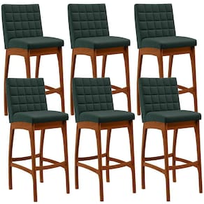 ndo muita excelência, o Kit 06 Banquetas Altas Para Cozinha Sala de Jantar Fixa Mila B04 Linho Verde Musgo - Lyam Decor é o complemento que faltava para deixar sua casa ainda mais extraordinária. Seu encosto com costura em padrão quadriculado e assento estofados, centralizam em si uma graciosidade estonteante, sem perder todo o seu conforto. A estrutura em madeira, na cor nozes, também é digna de notoriedade, por imprimir bastante personalidade a sua decoração. Vale ressaltar ainda, o apoio para os pés que garante maior à mesma.