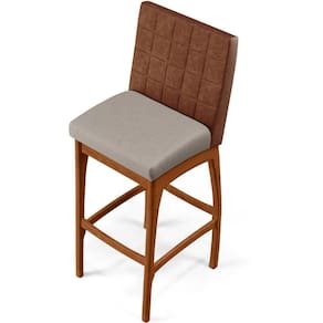 ndo muita excelência, o Kit 06 Banquetas Altas Cozinha Sala Jantar Fixa Mila B04 Couríssimo Marrom Linho Bege - Lyam Decor é o complemento que faltava para deixar sua casa ainda mais extraordinária. Seu encosto com costura em padrão quadriculado e assento estofados, centralizam em si uma graciosidade estonteante, sem perder todo o conforto. A estrutura em madeira, na cor nozes, também é digna de notoriedade, por imprimir bastante personalidade a sua decoração. Vale ressaltar ainda, o apoio para os pés que garante maior à banqueta.