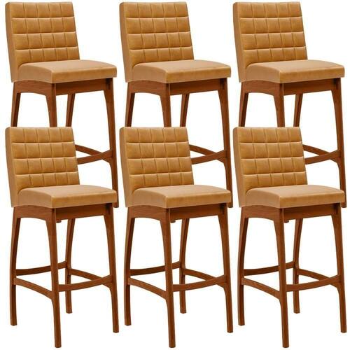 ndo muita excelência, o Kit 06 Banquetas Altas Para Cozinha Sala de Jantar Fixa Mila L02 Couríssimo Whisky - Lyam Decor é o complemento que faltava para deixar sua casa ainda mais extraordinária. Seu encosto com costura em padrão quadriculado e assento estofados, centralizam em si uma graciosidade estonteante, sem perder todo o conforto. A estrutura em madeira, na cor nozes, também é digna de notoriedade, por imprimir bastante personalidade a sua decoração. Vale ressaltar ainda, o apoio para os pés que garante maior à mesma.