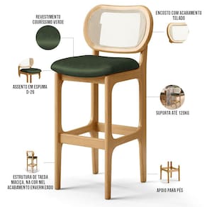 Amplamente sofisticada, a Banqueta Betta irá agregar ainda mais valor em sua decoração!! Sendo capaz de compor muito bem o ambiente, é produzida com materiais de excelente qualidade, a resistente estrutura em madeira de Taeda, na cor Mel, conta com apoio para os pés (que garante maior segurança), além do assento e encosto estofados super confortáveis e convidativos, que são revestidos em tecido Couríssimo, extremamente elegante. Podendo ser disposta em bancada, cozinha americana, espaço gourmet ou home bar, as possibilidades de combinação são infinitas, o que a torna perfeita para receber família e amigos sempre de forma agradável e aconchegante, sem perder a sobriedade e requinte que possui. Você e seu lar merecem, adquira já a sua!!