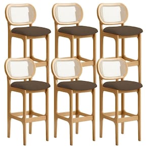 Kit 06 Banquetas Altas Para Cozinha Bancada Sala Tela Betta Fixa L02 Suede Marrom - Lyam