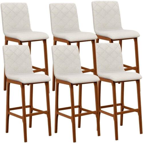 O complemento perfeito para o seu ambiente existe e está aqui!! O Kit 06 Banquetas Altas Para Cozinha Sala de Jantar Fixa Zoe B04 Linho Champagne - Lyam Decor vai ampliar totalmente a maneira como você compunha sua decoração, numa pegada clássica, com belíssima estrutura em madeira, na cor nozes, possui assento e encosto estofados super confortáveis e convidativos, além do apoio para os pés que garante maior segurança.