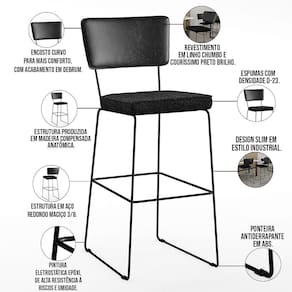 O espetáculo que é o Kit 06 Banquetas Altas Sala Jantar Fixa Allana L02 Couríssimo Preto Linho Chumbo - Lyam Decor vem para agregar ainda mais valor na decoração da sua casa. Sua estrutura em aço remete-nos ao estilo industrial que surgiu em Nova York no século XX, já o assento e encosto estofados trazem equilíbrio e conforto criando a combinação perfeita para o ambiente.