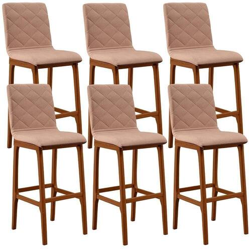 O complemento perfeito para o seu ambiente existe e está aqui! O Kit 06 Banquetas Altas Para Cozinha Sala de Jantar Fixa Zoe B04 Linho Rosê - Lyam Decor vai ampliar totalmente a maneira como você compunha sua decoração, numa pegada clássica, com belíssima estrutura em madeira, na cor nozes, possui assento e encosto estofados super confortáveis e convidativos, além do apoio para os pés que garante maior segurança.