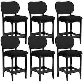 Amplamente sofisticada, o Kit 06 Banquetas Baixa Bar Cozinha Sala Jantar Betta L02 Linho Chumbo - Lyam Decor irá agregar ainda mais valor em sua decoração!! Sendo capaz de compor muito bem o ambiente, é produzida com materiais de excelente qualidade, a resistente estrutura em madeira de Taeda, na cor Preto, conta com apoio para os pés (que garante maior segurança), além do assento e encosto estofados super confortáveis e convidativos, que são revestidos em tecido Couríssimo, composição extremamente elegante.