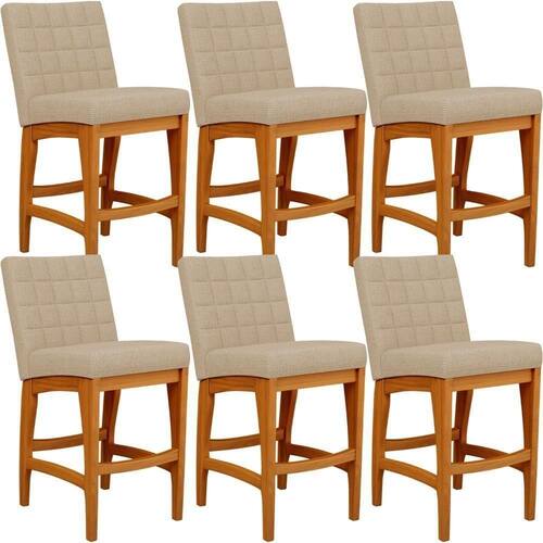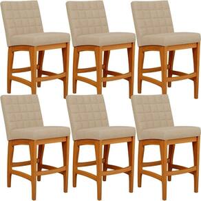 ndo muita excelência, o Kit 06 Banquetas Baixa Para Cozinha Bancada Bar Sala De Jantar 90 cm Fixa Mila L02 Linho Bege Escuro - Lyam Decor é o complemento que faltava para deixar sua casa ainda mais extraordinária. Seu encosto com costura em padrão quadriculado e assento estofados, centralizam em si uma graciosidade estonteante, sem perder todo o seu conforto. A estrutura em madeira, na cor nozes, também é digna de notoriedade, por imprimir bastante personalidade a sua decoração. Vale ressaltar ainda, o apoio para os pés que garante maior segurança à mesma.