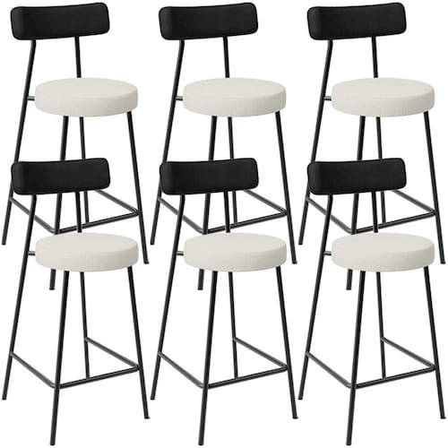 Kit 06 Banquetas Baixa Cozinha Sala Jantar Milão L02 Couríssimo Preto Linho Champagne - Lyam Decor